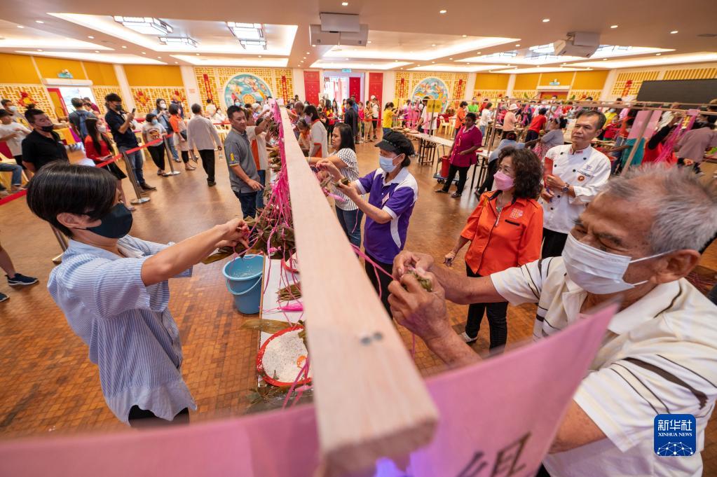 為迎接即將到來(lái)的端午節(jié),馬來(lái)西亞吉隆坡18日舉辦裹粽比賽,現(xiàn)場(chǎng)還為公眾開(kāi)設(shè)了裹粽教學(xué)體驗(yàn)活動(dòng)。