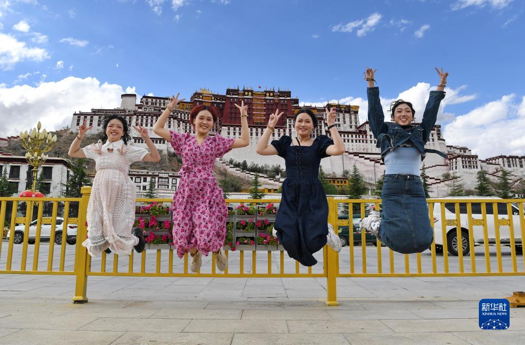 游客在布達(dá)拉宮廣場上合影留念(6月16日攝)。
