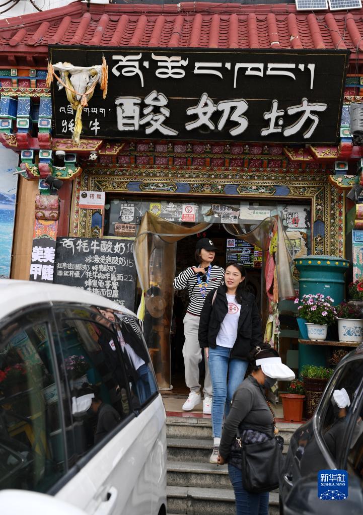 這是布達(dá)拉宮附近的一家備受游客歡迎的酸奶坊(6月16日攝)。