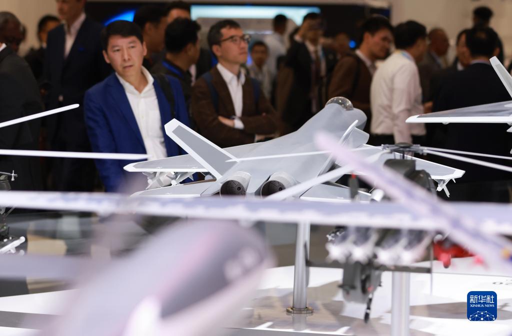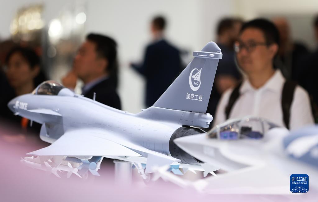 6月19日,在法國巴黎近郊的布爾歇機(jī)場舉行的巴黎航展上,人們參觀中國航空工業(yè)集團(tuán)展區(qū)。