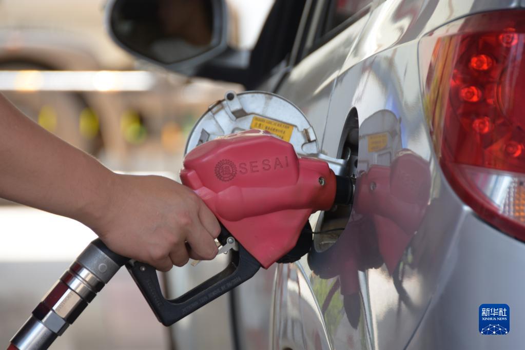 6月28日,河北省邢臺(tái)市任澤區(qū)一家加油站的工作人員在給汽車加油。