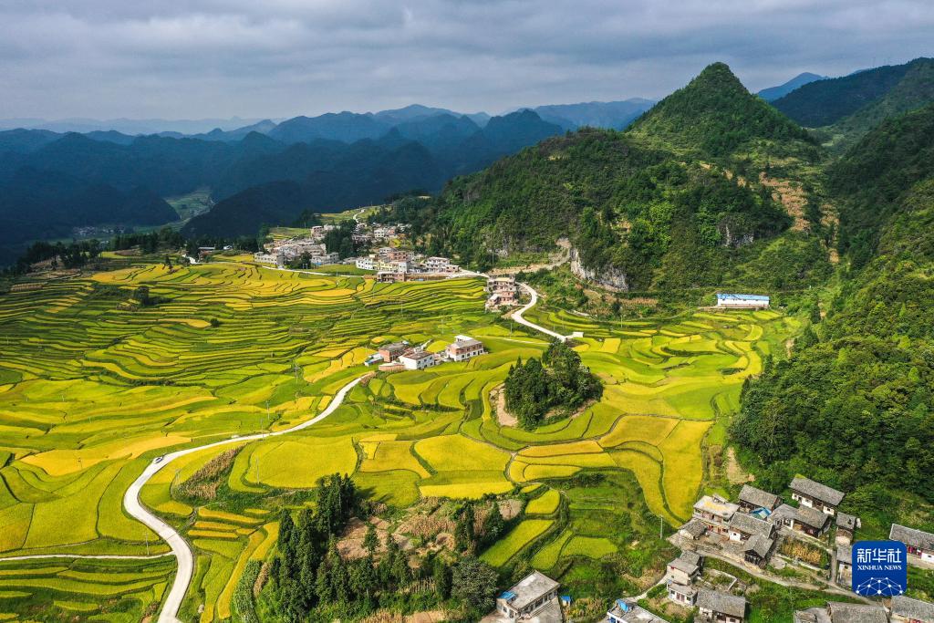 這是9月7日拍攝的貴州省貴定縣沿山鎮(zhèn)臘利梯田與村莊(無人機(jī)全景照片)。
