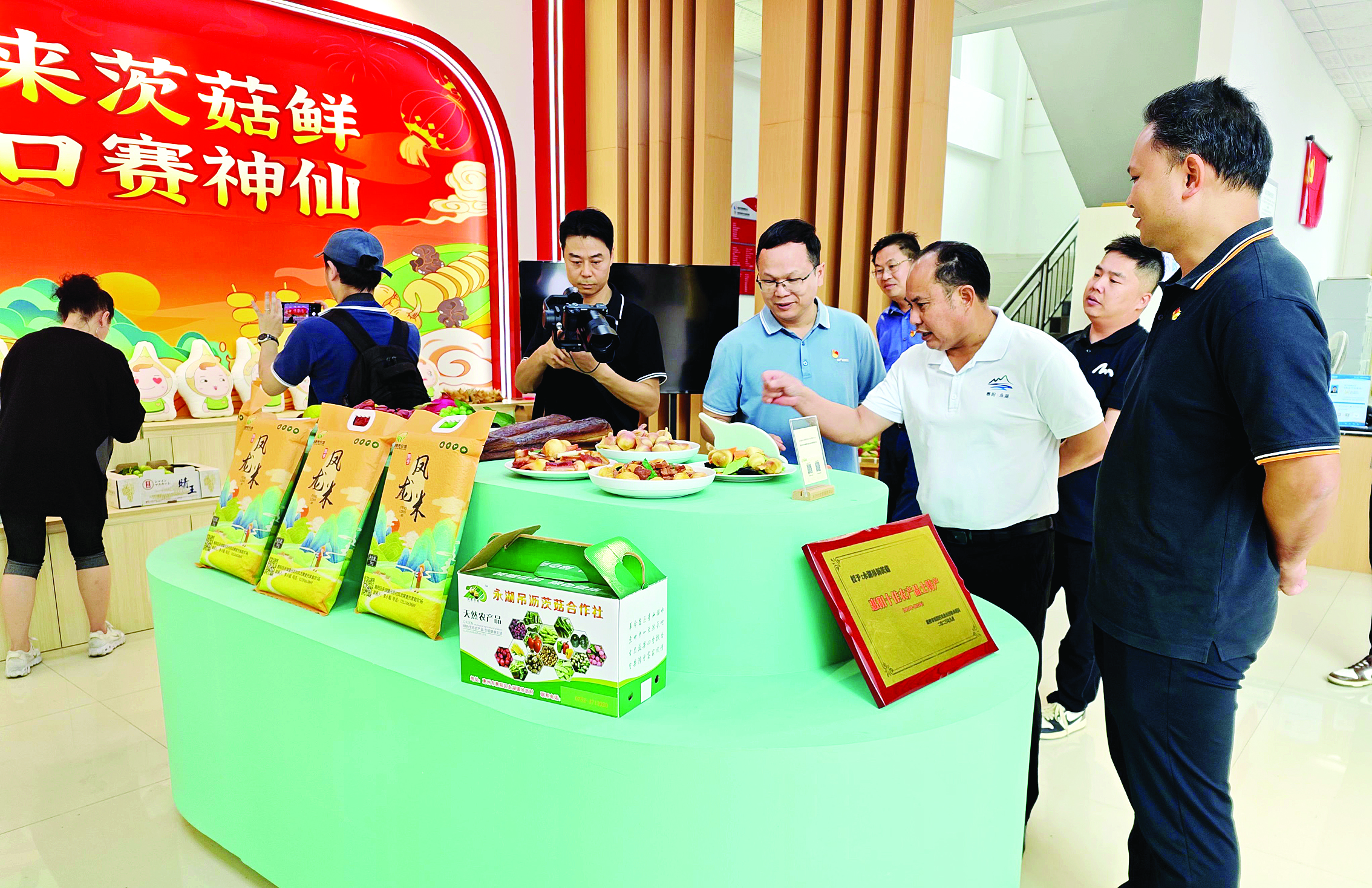 網(wǎng)絡(luò)“大V”走進(jìn)永湖鎮(zhèn)吊瀝村參觀茨菇展廳。