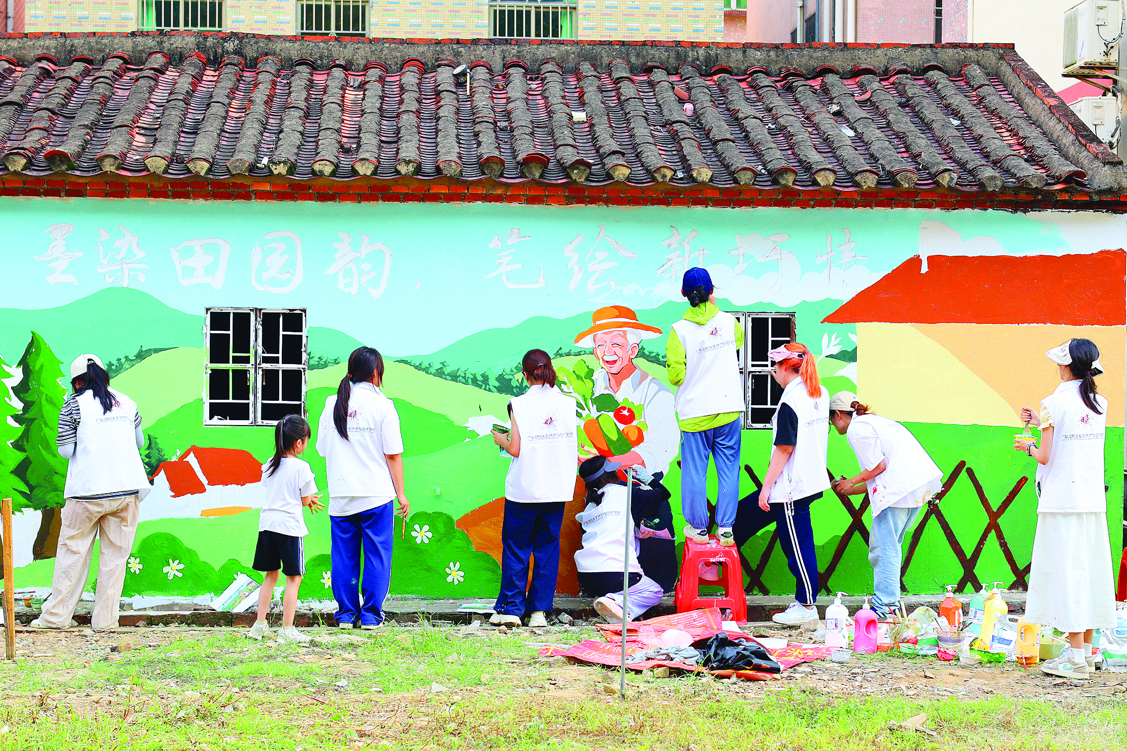 廣東財經大學大學生創(chuàng)作墻繪扮靚圩鎮(zhèn)村莊顏值。