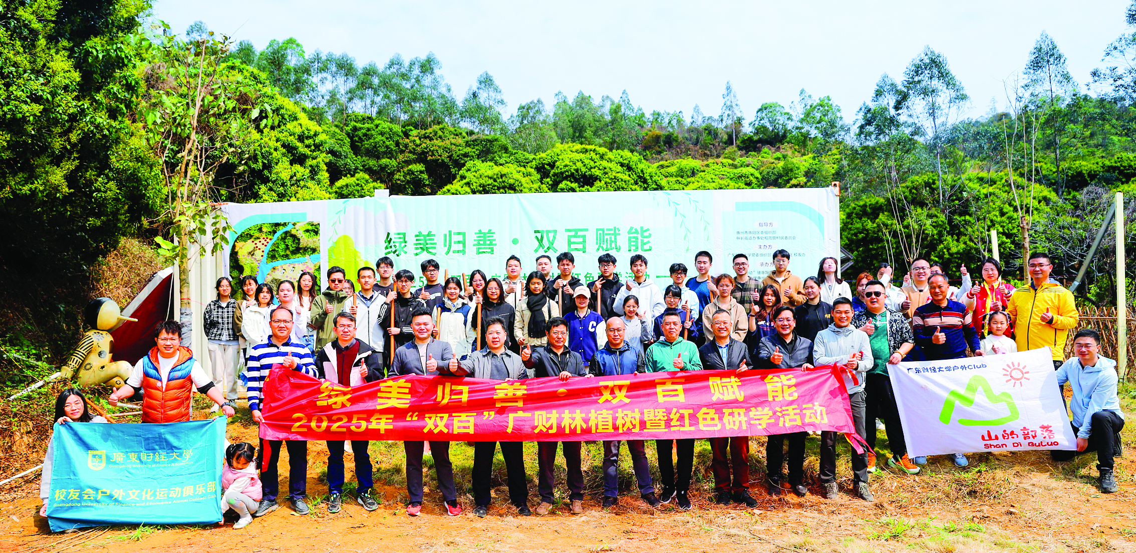 今年4月,廣東財經大學藝術與設計學院“藝術鄉(xiāng)見·智匯秋長”畢業(yè)生設計作品展在周田村舉辦,高校的創(chuàng)意與鄉(xiāng)村的空間碰撞出火花。188棵樹苗組成的“雙百”廣財林,由兩校校友籌資捐種,成為綠美鄉(xiāng)村新景。