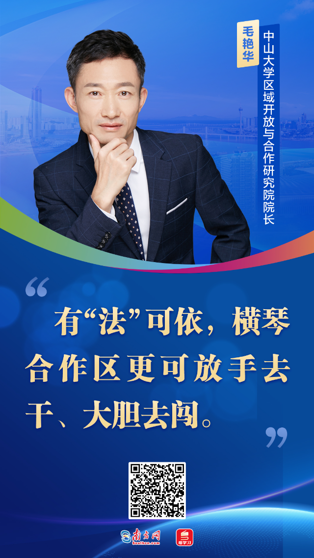 毛艷華:這幾年,橫琴、前海、南沙三個(gè)重大合作平臺(tái)相關(guān)的政策法規(guī),都釋放出激勵(lì)改革創(chuàng)新的信號(hào),此次出臺(tái)的《條例》亦然。