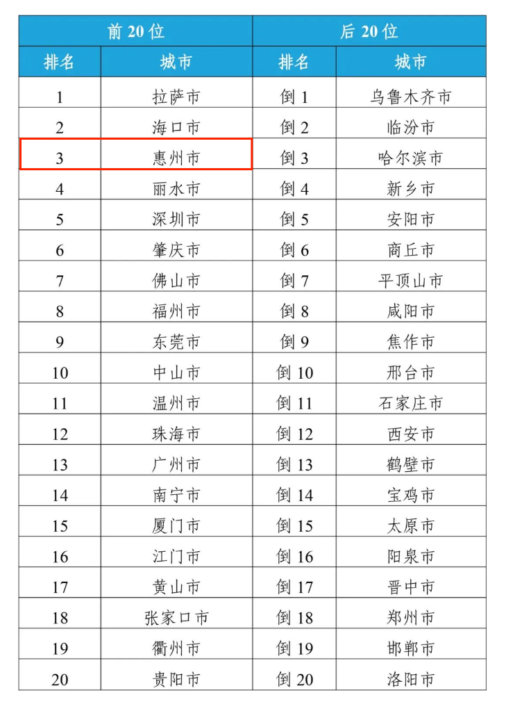 2月惠州環(huán)境空氣質(zhì)量全國第三
