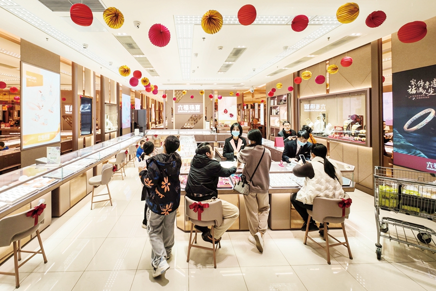 “今年春節(jié)和情人節(jié)期間,市民來購買黃金飾品、結(jié)婚三金的比較多,購買投資金條的也比以往大幅增加!敝艽蟾F放茖(dǎo)購員告訴記者,當(dāng)前黃金消費(fèi)需求有很大提升,也有不少顧客購買金條進(jìn)行投資保值。
