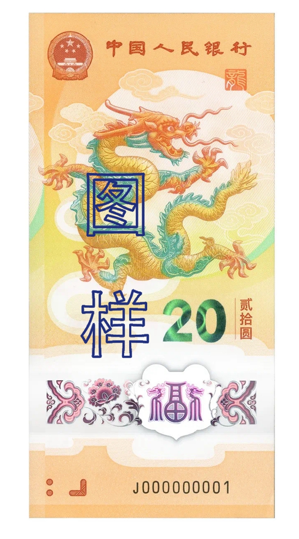 龍年紀(jì)念鈔正面。 本組圖片均為資料圖片