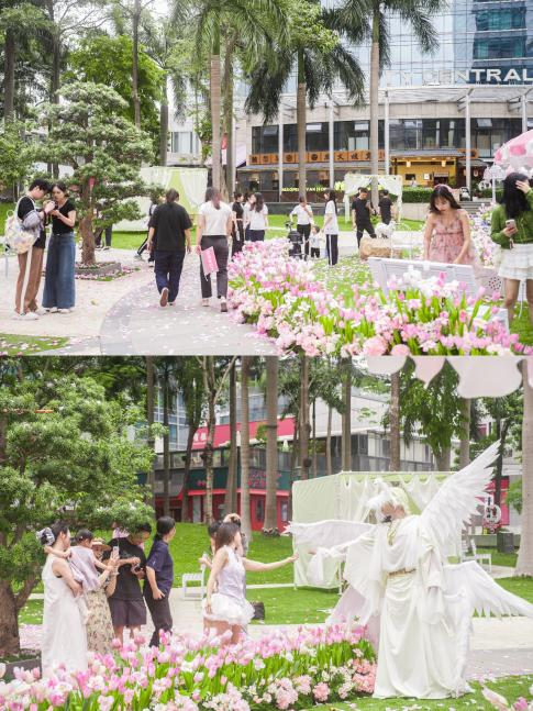 14周年慶之際,漫步在華貿(mào)天地新生的「漫生之境」,時(shí)間仿佛被施了魔法。仿真郁金香在微風(fēng)中輕輕搖曳,轉(zhuǎn)角處的休憩長(zhǎng)椅正等待一場(chǎng)不經(jīng)意的邂逅。"每次經(jīng)過(guò)這片綠洲,都會(huì)不自覺(jué)地放慢腳步。"這不是傳統(tǒng)意義上的商業(yè)空間,而是用3000平方米溫柔編織的城市客廳,讓每個(gè)都市靈魂都能找到安放疲憊的角落。