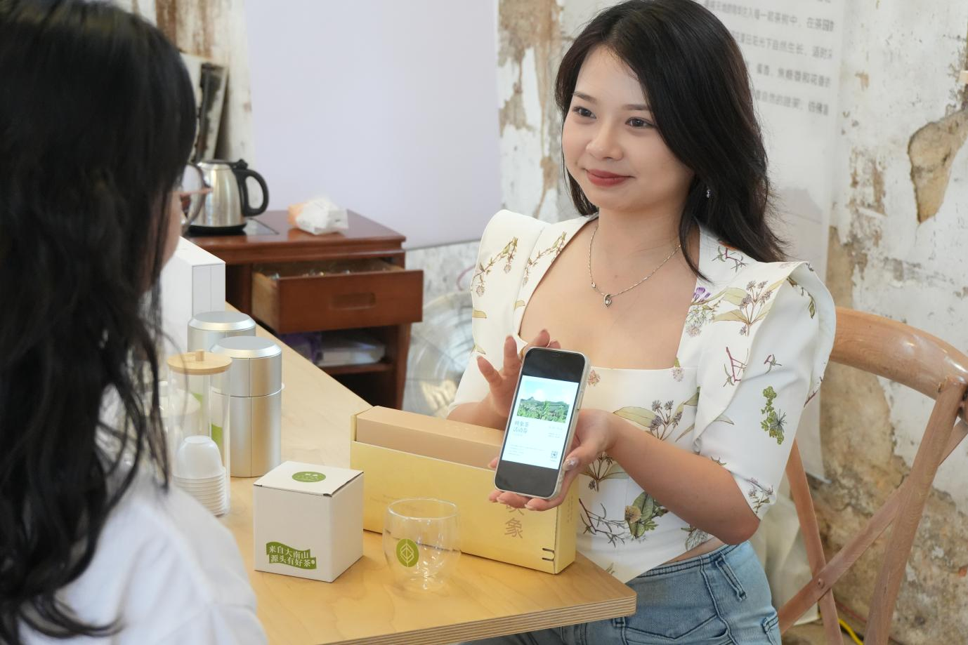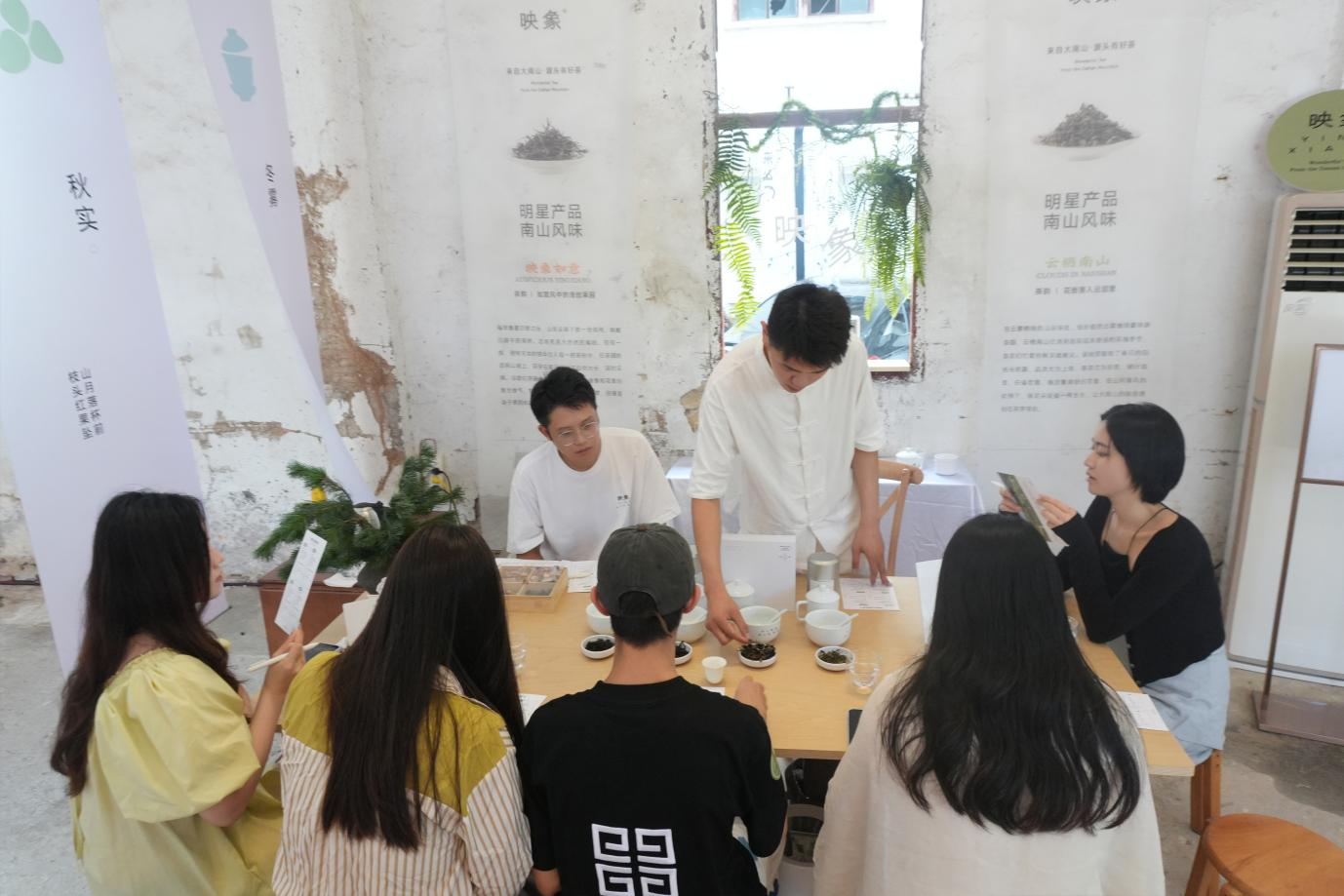 “映象茶的每一片茶葉都帶著惠州的基因! 品牌主理人楊倩怡在快閃店落地的第一天上介紹到,大南山茶園位于北回歸線穿過的生態(tài)屏障區(qū),常年云霧繚繞,土壤中富含的微量元素與東江流域的濕潤氣候,共同孕育出茶湯里獨(dú)有的 “嶺南甘韻”。展覽中,現(xiàn)場時(shí)刻都在進(jìn)行的“杯測(cè)活動(dòng)”直觀呈現(xiàn)了“嶺南甘韻”:大南山滋養(yǎng)而成的茶葉在同樣的沖泡手法和沖泡條件,沖泡后色澤、香氣的細(xì)微差異,被放大成可視化的藝術(shù),讓觀眾讀懂 “一方水土養(yǎng)一方茶” 的深層邏輯。