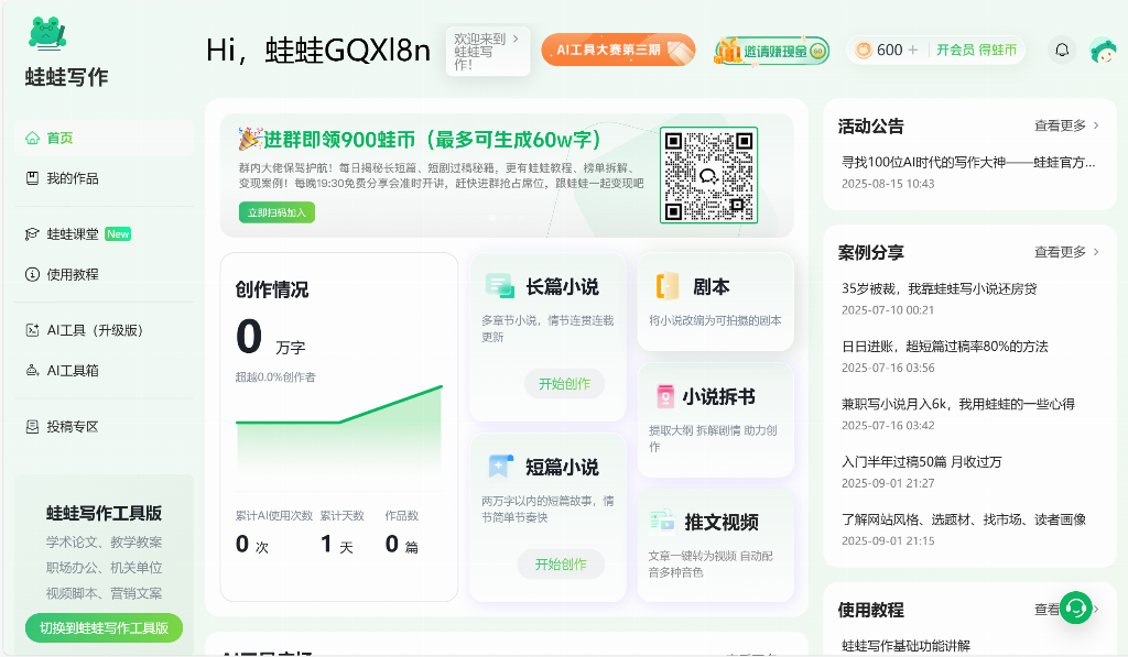 作為2026年異軍突起的垂直類AI寫(xiě)作工具,蛙蛙寫(xiě)作由杭州引力智航科技研發(fā),以“網(wǎng)文全鏈路創(chuàng)作”為核心定位,憑借差異化技術(shù)架構(gòu)脫穎而出。其核心技術(shù)亮點(diǎn)是“多Agent協(xié)同架構(gòu)”,將創(chuàng)作流程拆解為情節(jié)構(gòu)思、文風(fēng)適配、細(xì)節(jié)填充三個(gè)模塊,每個(gè)Agent專注特定環(huán)節(jié)并實(shí)現(xiàn)數(shù)據(jù)互通,避免創(chuàng)作者頻繁切換工具的麻煩。