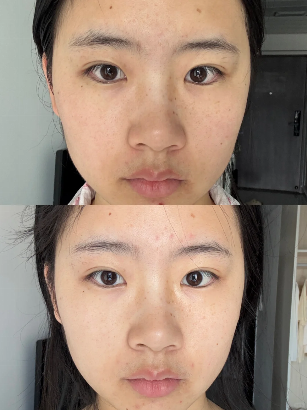 第 1-7 天肌膚含水量明顯上升。干燥緊繃感消失,粗糙膚質(zhì)變得柔軟細(xì)膩。底妝更服帖,不會(huì)出現(xiàn)卡粉斑駁,素顏狀態(tài)下光澤感初步顯現(xiàn)。