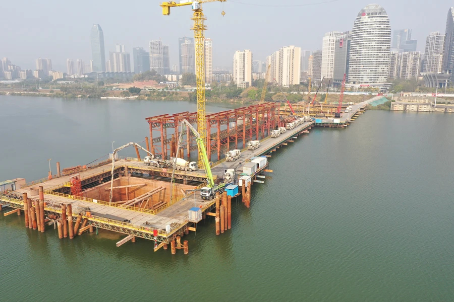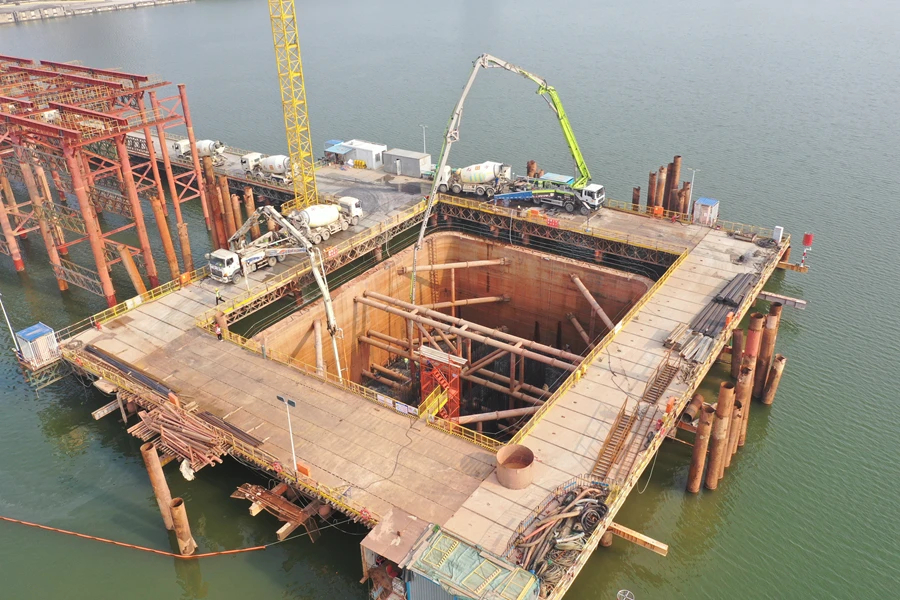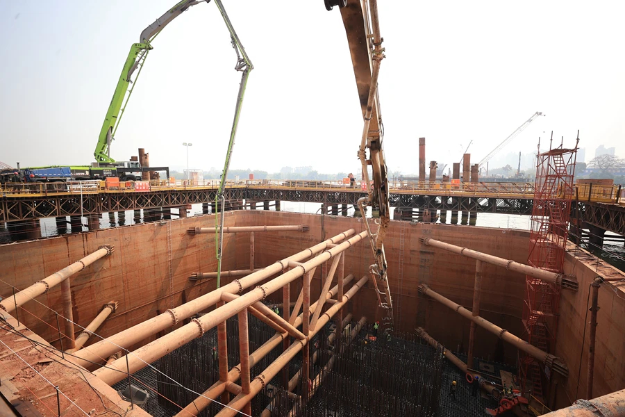 3月4日下午4時(shí)許,隨著最后一車混凝土注入承臺(tái),歷經(jīng)57個(gè)小時(shí)的連續(xù)施工,由中鐵廣州局承建的鵝城大橋項(xiàng)目主橋ZP3承臺(tái)順利完成澆筑。據(jù)悉,此次澆筑的承臺(tái)是鵝城大橋最重要的控制性節(jié)點(diǎn)工程,共計(jì)澆筑混凝土4181方,為后續(xù)鋼梁架設(shè)施工奠定了堅(jiān)實(shí)基礎(chǔ)。