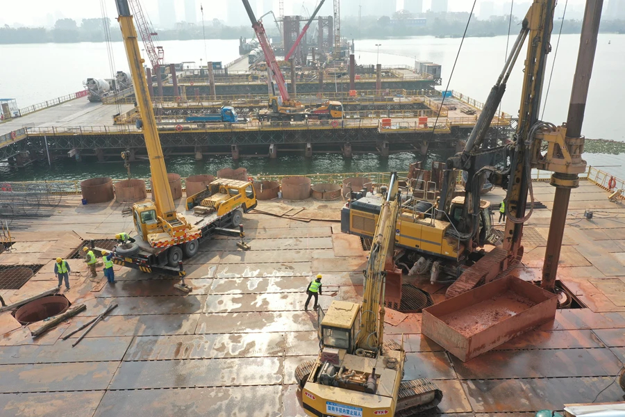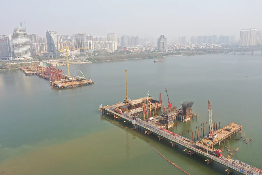 鵝城大橋位于惠州市惠城區(qū),起點(diǎn)順接惠州大道,主線下穿菊花路,途經(jīng)期湖塘路,跨東江后,沿規(guī)劃同福路向東,終點(diǎn)為現(xiàn)狀江東一號(hào)路。大橋主線全長2974米,按雙向6車道設(shè)計(jì)。全橋共有180根樁基,其中主橋90根樁基已全部完成計(jì)劃明年建成通車。