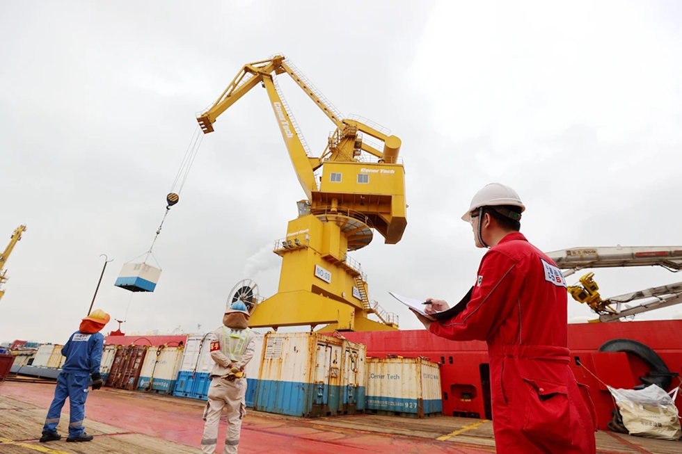 當(dāng)日上午7時(shí)40分許,“海洋石油681”到達(dá)航行中途的“南海五號(hào)”平臺(tái),為該平臺(tái)送達(dá)生產(chǎn)設(shè)備及生活補(bǔ)給物資。貨物卸完后,船舶繼續(xù)航行,下午1時(shí)許,“海洋石油681”順利抵達(dá)雄偉壯觀的“國(guó)瑞”平臺(tái)。記者從船舶甲板上,通過(guò)吊籃的方式“吊”到數(shù)十米高的“國(guó)瑞”平臺(tái)最高層的停機(jī)坪,安全抵達(dá)平臺(tái)。