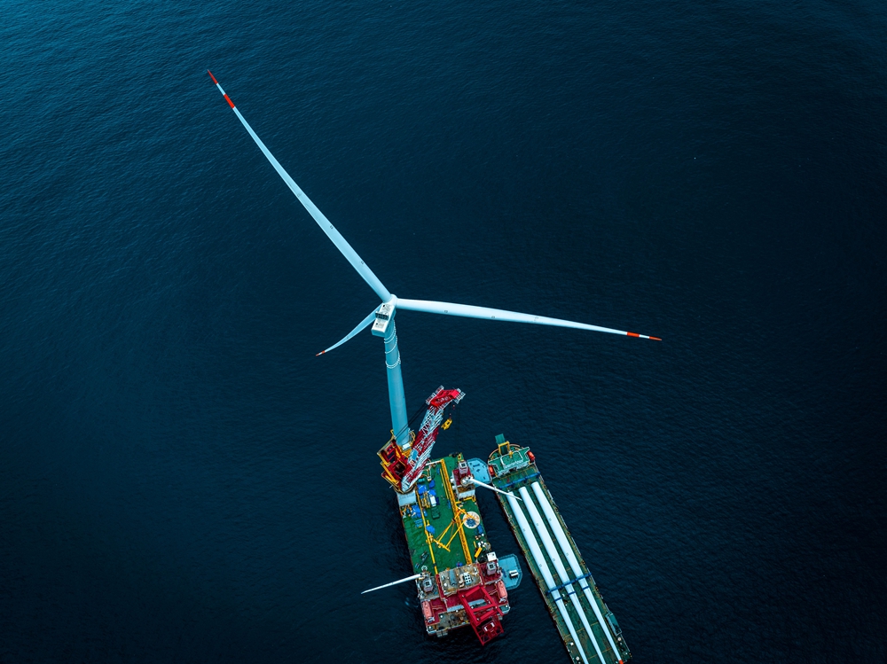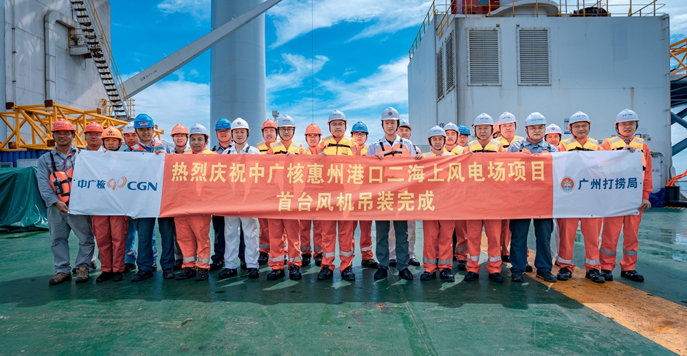 首臺(tái)風(fēng)機(jī)完成吊裝標(biāo)志著中廣核惠州港口海上風(fēng)電場(chǎng)項(xiàng)目二期進(jìn)入全面吊裝階段。