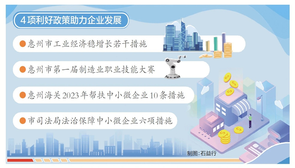 發(fā)布惠州市工業(yè)經(jīng)濟穩(wěn)增長若干措施等4項利好政策,真金白銀支持中小微企業(yè)高質(zhì)量發(fā)展;為去年省級專精特新企業(yè)、國家專精特新“小巨人”企業(yè)代表授牌,推動中小微企業(yè)走專精特新發(fā)展道路;5年內(nèi)為企業(yè)提供1.27萬億元融資支持,政銀合作破解中小微企業(yè)“融資難”……