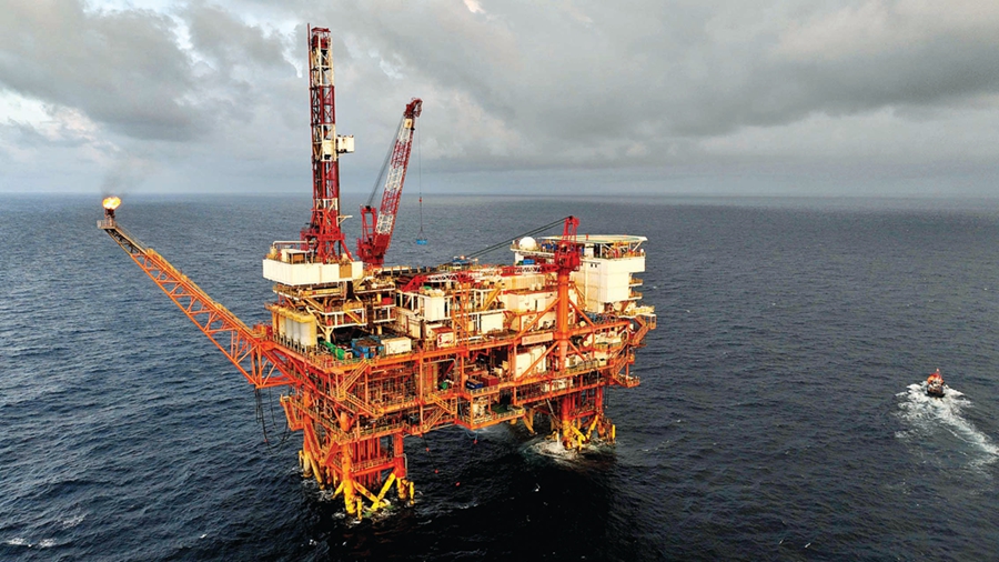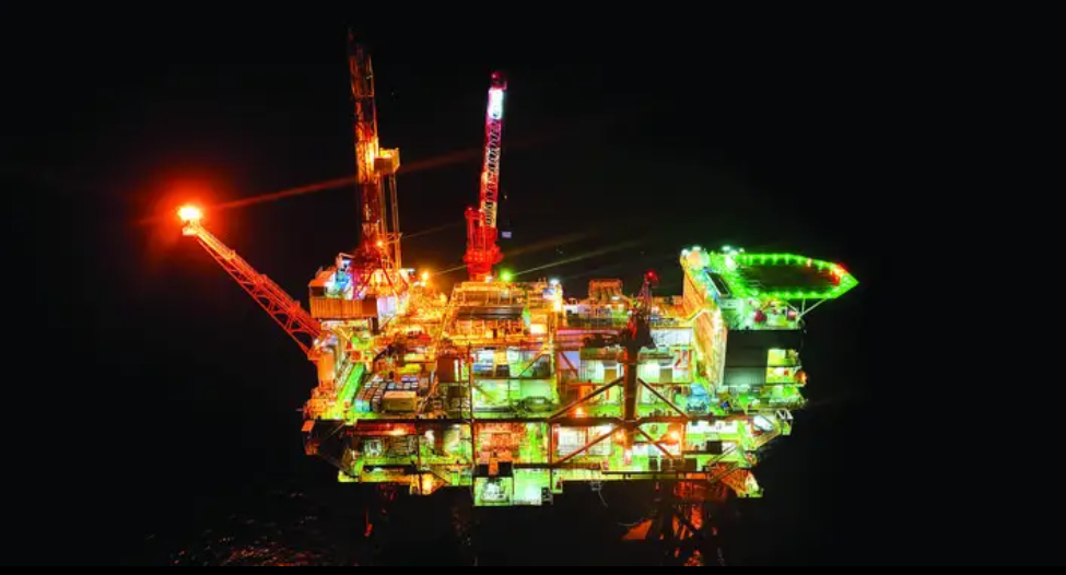 燈火通明的惠州25-8鉆采平臺(tái)。