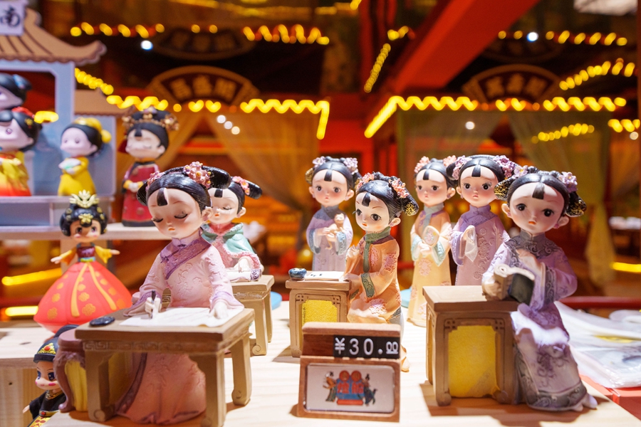 市集上的古風(fēng)小人偶十分討喜。