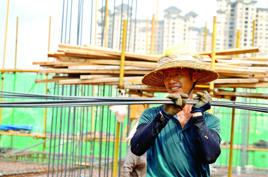 市中心人民醫(yī)院金山院區(qū)一期項(xiàng)目施工現(xiàn)場(chǎng),工人頭頂烈日忙施工。惠州日?qǐng)?bào)記者李松權(quán) 攝