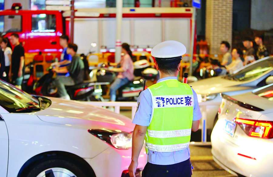 交警在市區(qū)水東街執(zhí)勤確保交通順暢。惠州日?qǐng)?bào)記者黃鑫威 攝