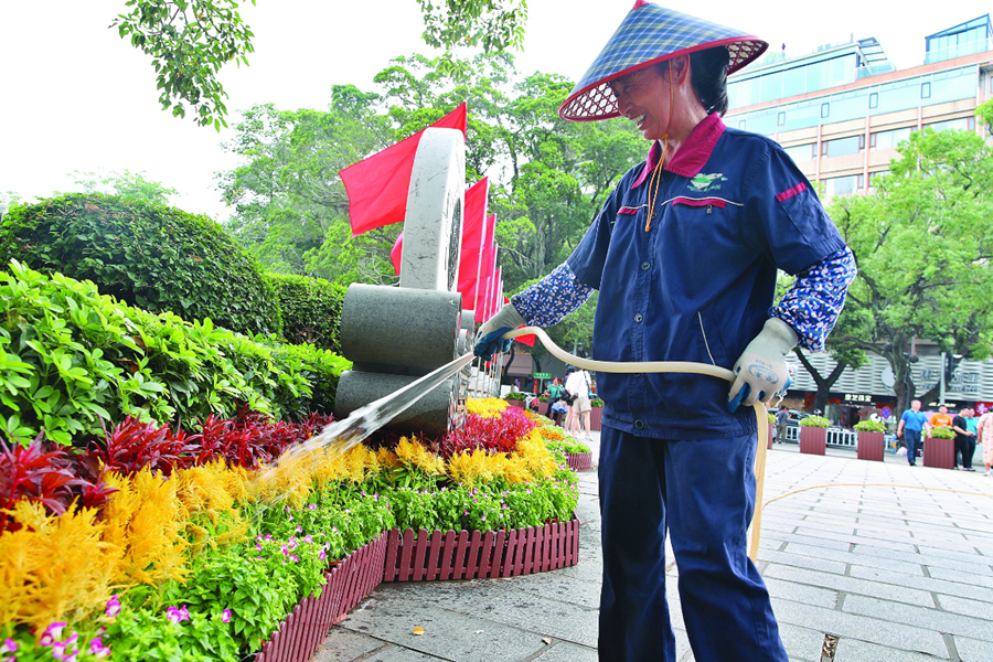 園林工人盡心護(hù)綠保綠;葜萑?qǐng)?bào)記者鐘暢新 攝
