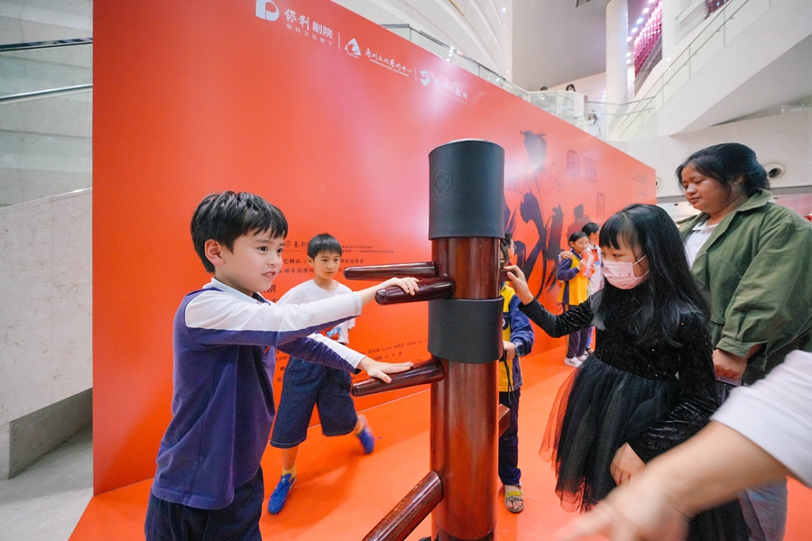 劇組在劇院外設置的木人樁吸引了不少觀眾前來體驗。