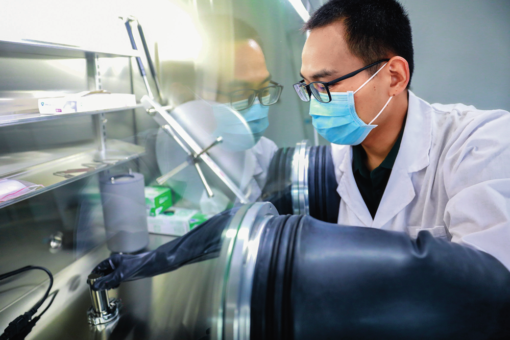 科研人員在位于廣東東莞的松山湖材料實驗室做實驗,進行月壤樣品研究(2021 年 9 月攝) 松山湖材料實驗室供圖