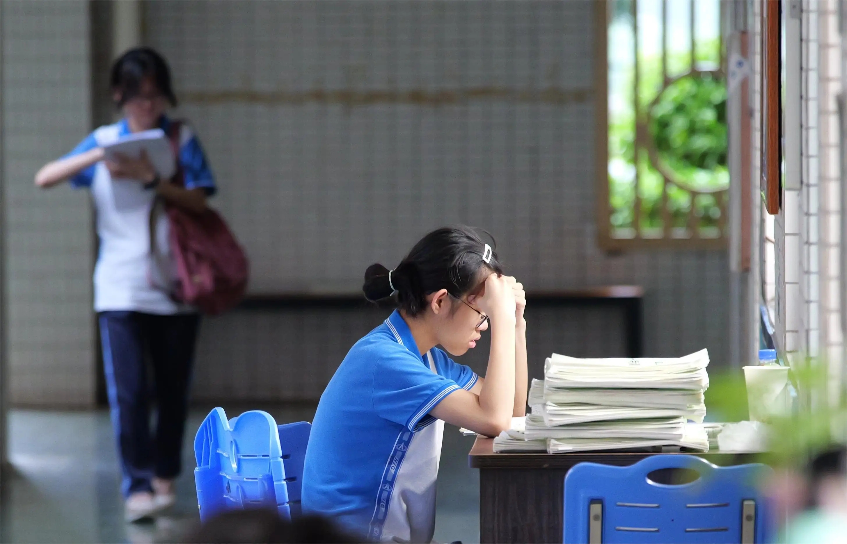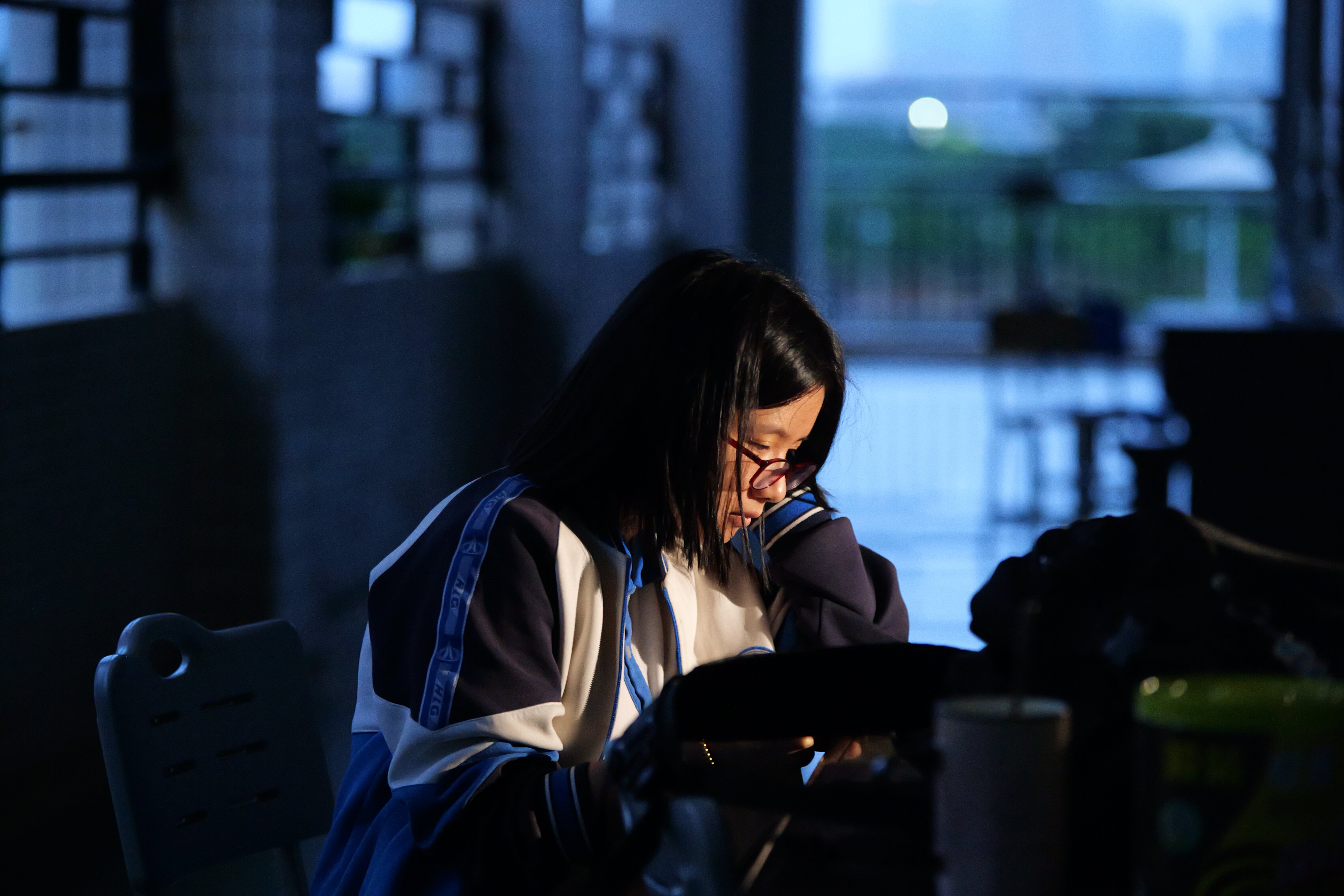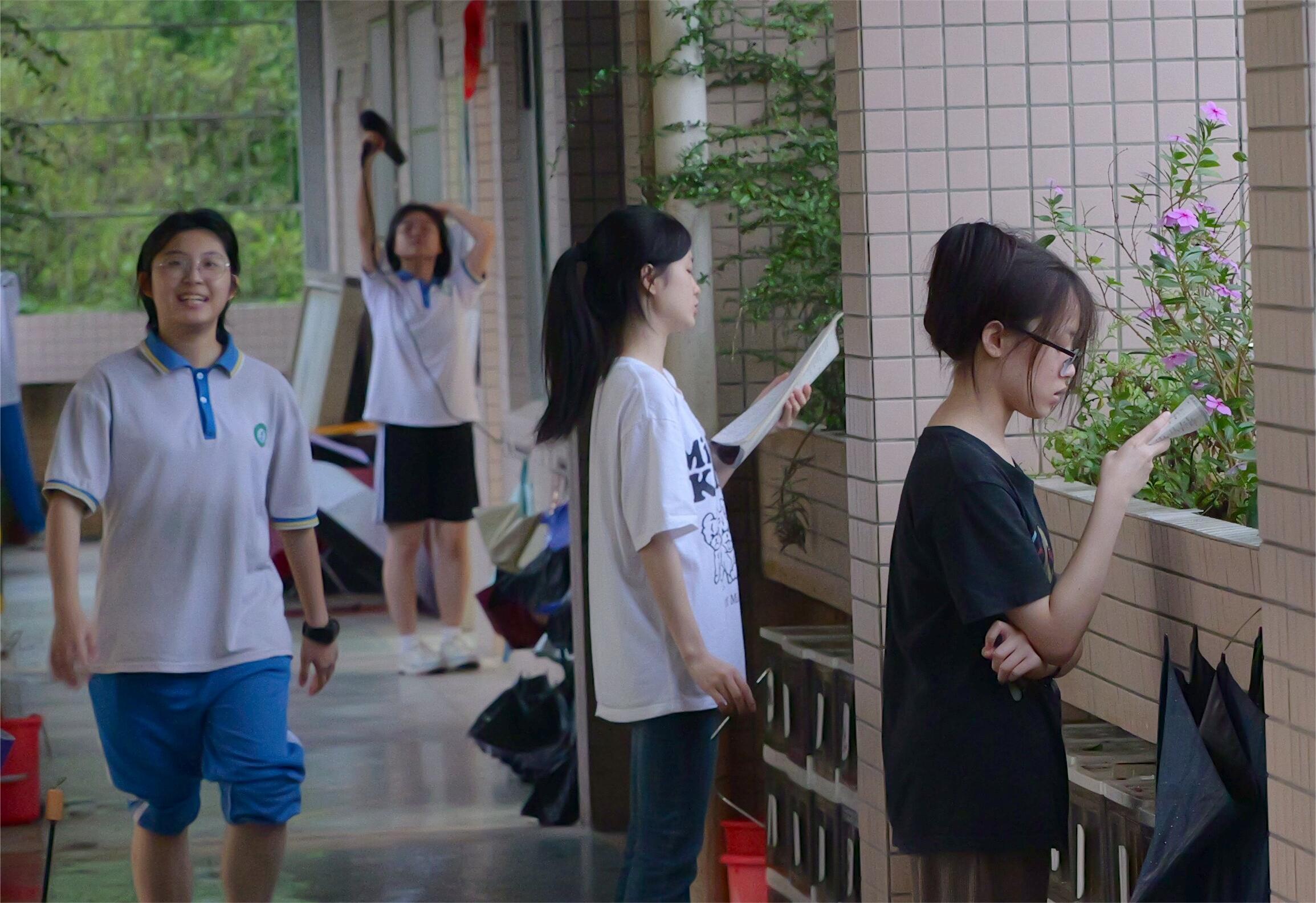 凌晨5點(diǎn)10分,天空下起了小雨,夜色尚未散去,惠州市華羅庚中學(xué)的部分高三教室已經(jīng)亮起溫暖的燈光,高三(8)班的黃珈穎在課室外的走廊上安靜地看書,她告訴記者:“我希望在剩下的十幾天里再努力一點(diǎn),希望成績還能提上去!