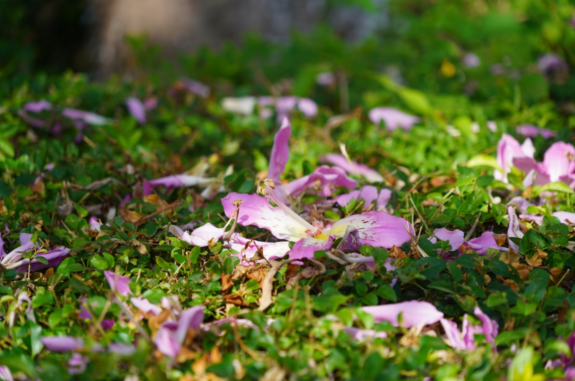 美麗異木棉的花色是淡粉色,其樹冠傘形,花朵大而艷盛花期滿樹姹紫,花期可持續(xù)數月,是優(yōu)良的觀花喬木。美麗異木棉在秋冬開的十分熱烈,滿樹粉紅色的花朵,燦若云霞,異常美麗,陽光下怒放的美麗異木棉,斑駁光影,流離婆娑,花枝搖曳,十分好看。偶爾墜落草叢,拾起一朵放在手心,淡淡花香沉醉其中。