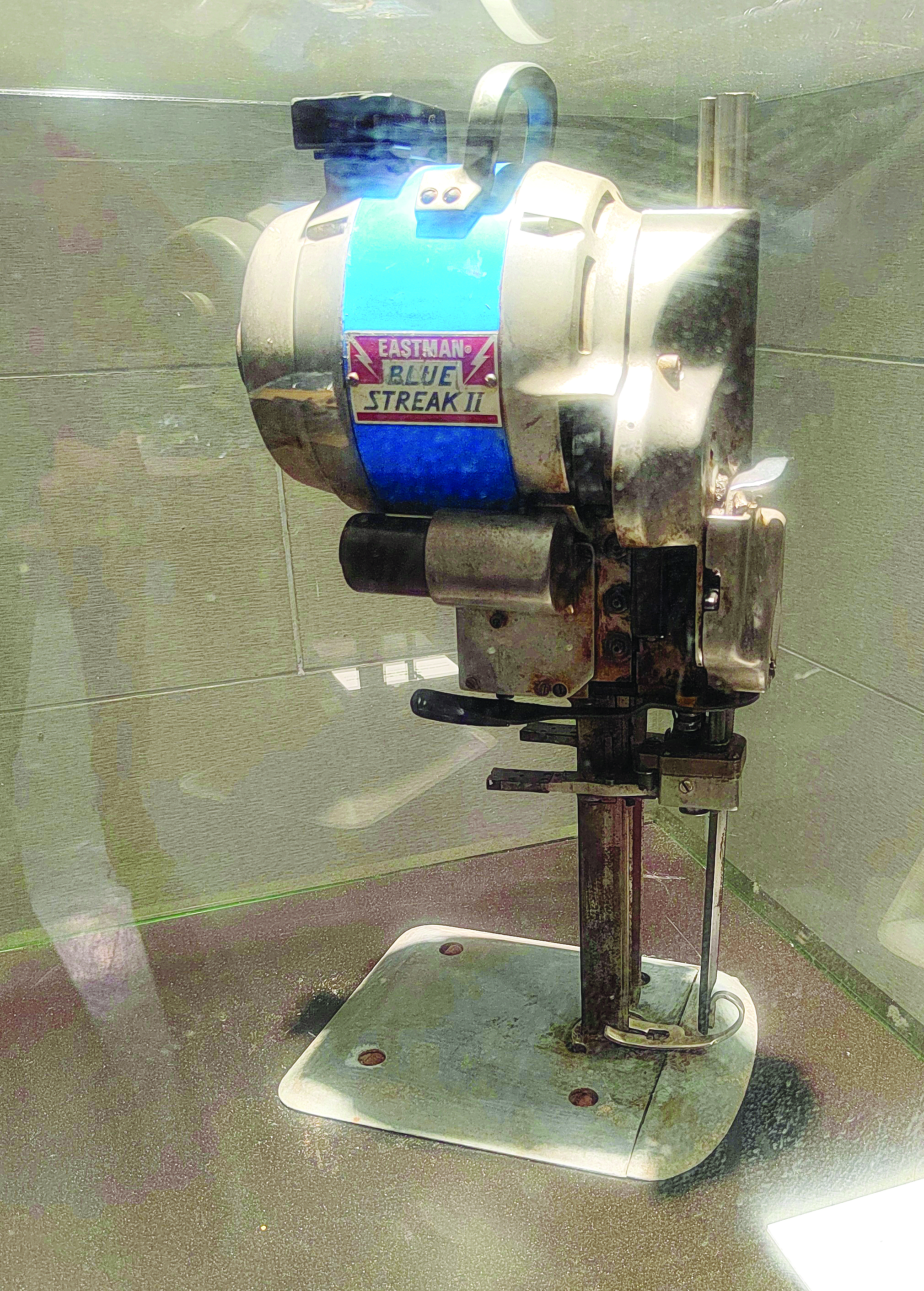 進入館內(nèi),服飾生產(chǎn)工具展示點綴其中,各式各樣的縫紉機、裁床電剪、熨斗等工具出現(xiàn)在眼前,它們浸潤過工人們、設(shè)計師們的汗水智慧,如今已經(jīng)退役,成為一件件藏品甚至加工成工藝品,展示著企業(yè)不凡的成長歷程,F(xiàn)場可供操作的鎖眼機、縫紉機、釘紐扣、繡花機,寓意著工業(yè)生產(chǎn)的不息動力。