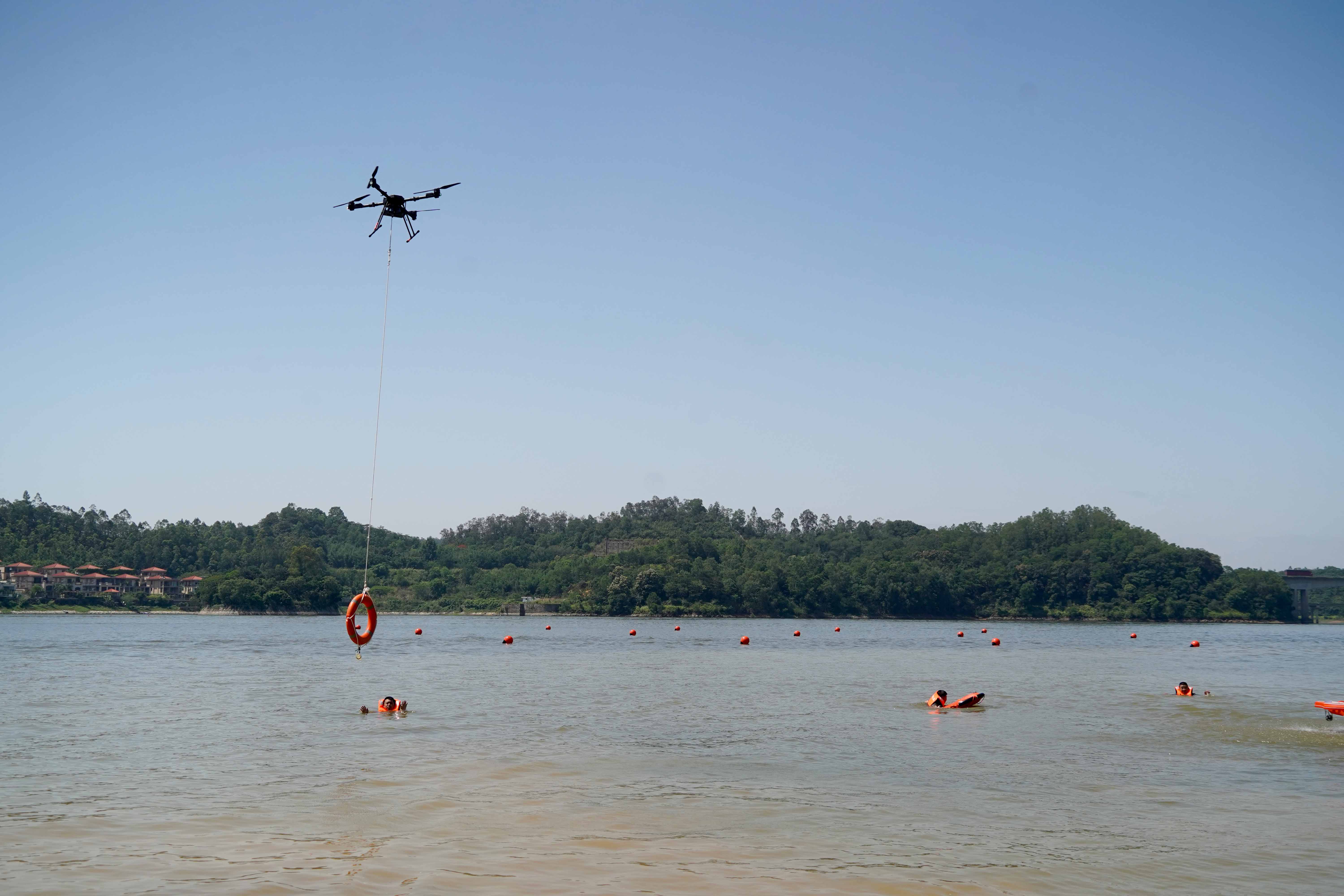 無人機投遞救生圈進行救援。