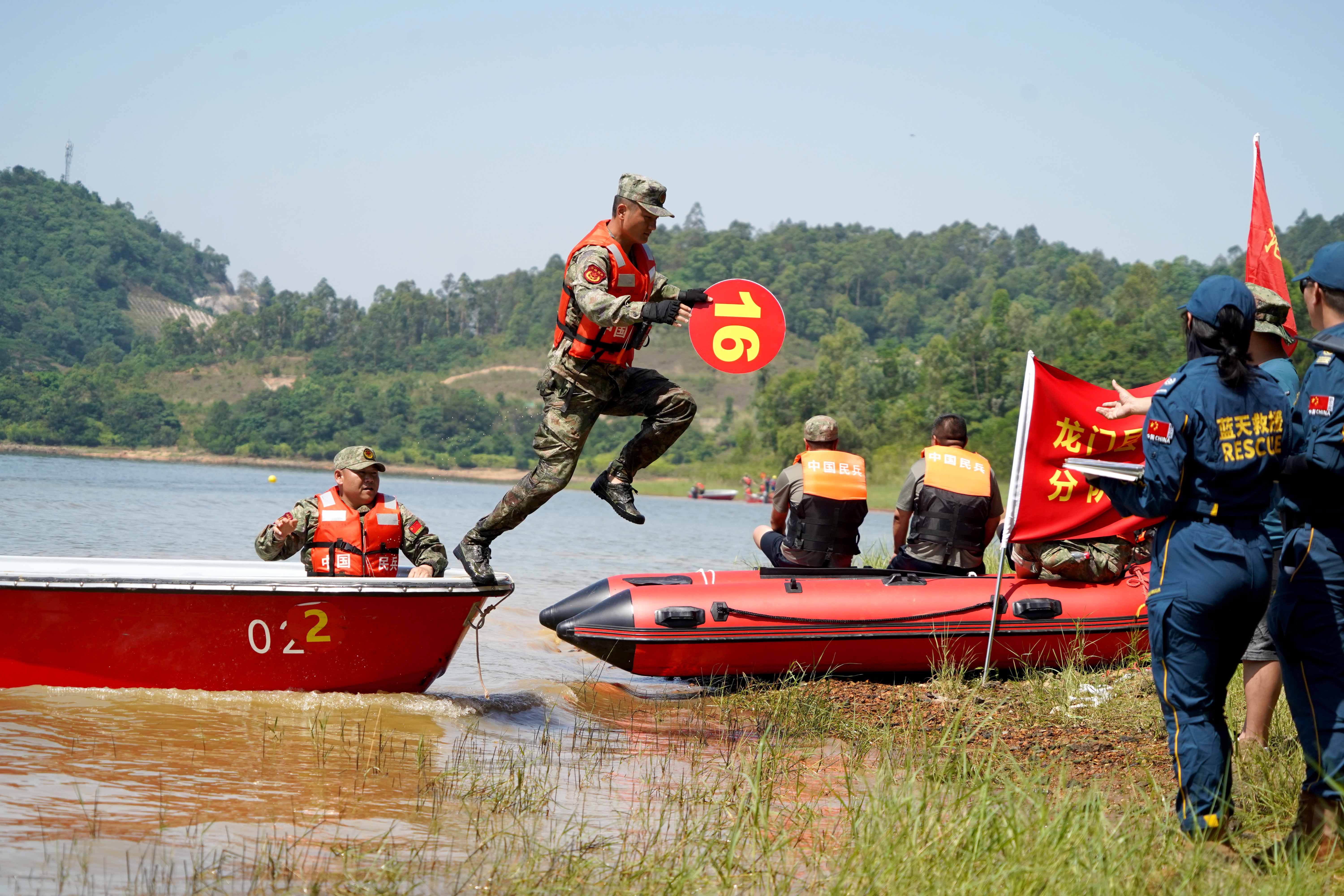 5月13日,在惠城區(qū)角洞水庫某水域,隨著現(xiàn)場指揮員一聲令下,惠州市2025年度民兵分隊抗洪搶險演練隨即拉開戰(zhàn)幕。來自各縣(區(qū))百余名民兵應(yīng)急分隊抗洪搶險專業(yè)骨干劈波斬浪、同臺競技,全方位全領(lǐng)域檢驗了全市民兵應(yīng)急分隊骨干組指揮、裝備使用和處置復(fù)雜險情能力。