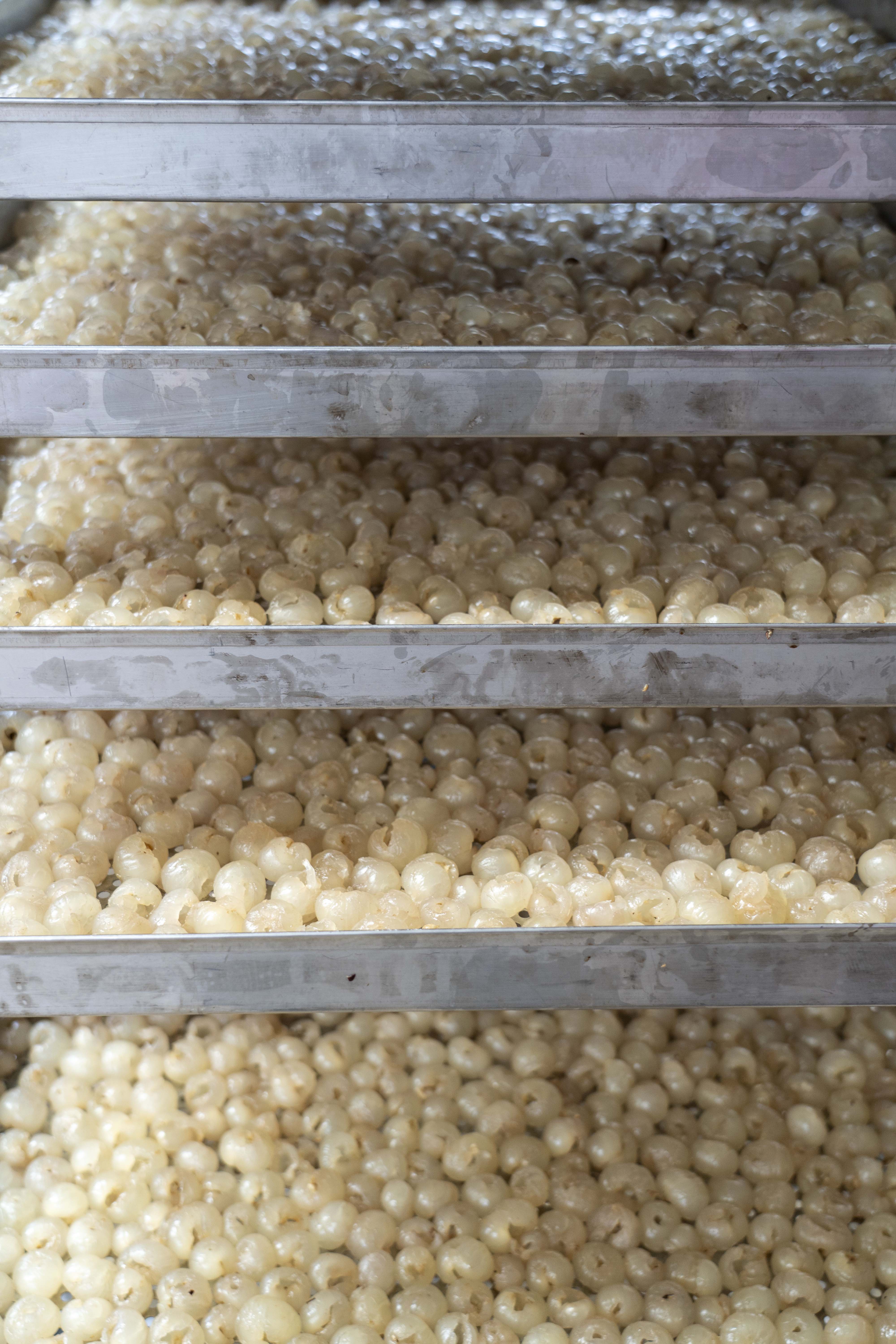 烘干 剝好的龍眼肉放進托盤準備烘干。