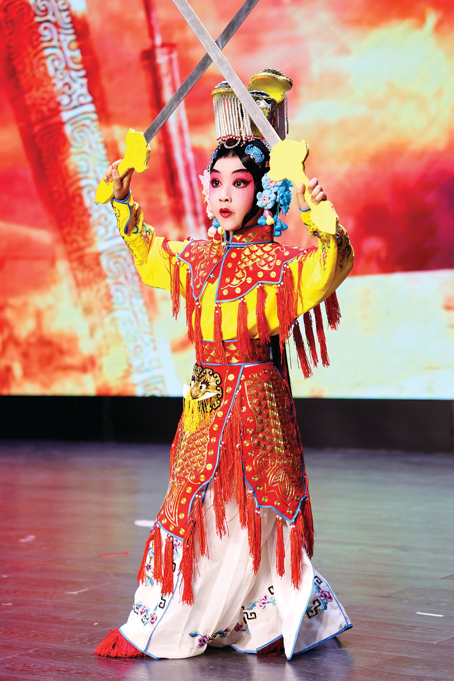 舞臺(tái)上,小傳承人們身著精致的戲服,頭戴華麗的盔頭,一板一眼都盡顯功底。來(lái)自加拿大的易阡辰雖生活在異國(guó),卻將《貴妃醉酒》中楊玉環(huán)的柔美婉約演繹得惟妙惟肖,眼神流轉(zhuǎn)間滿是對(duì)京劇的熱愛(ài);香港的小演員胡馨元帶來(lái)的《霸王別姬》,唱腔鏗鏘有力,招式利落干脆,展現(xiàn)出少年的英氣與豪情;惠州本土8歲的小傳承人陳晨則獻(xiàn)上了經(jīng)典劇目《霸王別姬·勸君王》,雙劍翻飛間,將虞姬的悲情與忠貞詮釋得淋漓盡致;就讀于中國(guó)戲曲學(xué)院附中、暑假回到惠州的龔嘉怡表演了《太真外傳·長(zhǎng)生殿》。還有來(lái)自貴州、湖北等地的小演員,分別表演了《呂布與貂嬋》《天女散花》等經(jīng)典選段,贏得了臺(tái)下觀眾熱烈掌聲。