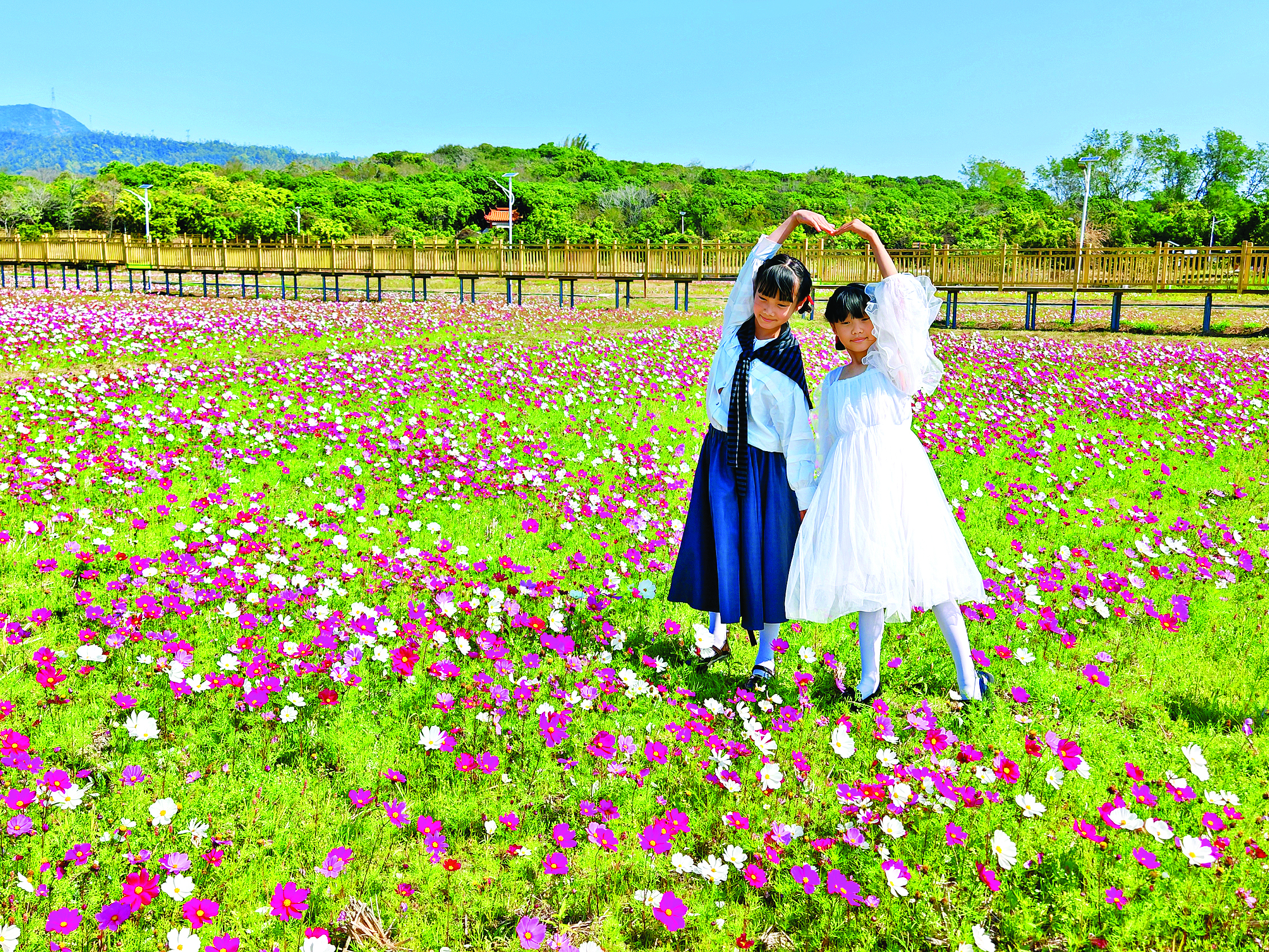 花浪起伏,已吸引不少市民來(lái)打卡。不少家庭結(jié)伴而行,沿著田埂悠然漫步,一邊欣賞美景,一邊閑話家常,享受著難得的親子時(shí)光。偶爾有騎行愛(ài)好者從田間村道穿梭而過(guò),為這片靜謐的花海增添了幾分動(dòng)感與活力!奥(tīng)說(shuō)這里的格桑花開(kāi)了,特意來(lái)拍照,我還帶了自拍桿。這里的風(fēng)景太美了,空氣也好,感覺(jué)整個(gè)人都放松了!”毛小姐在大亞灣工作,趁著公司放假特地來(lái)賞花。