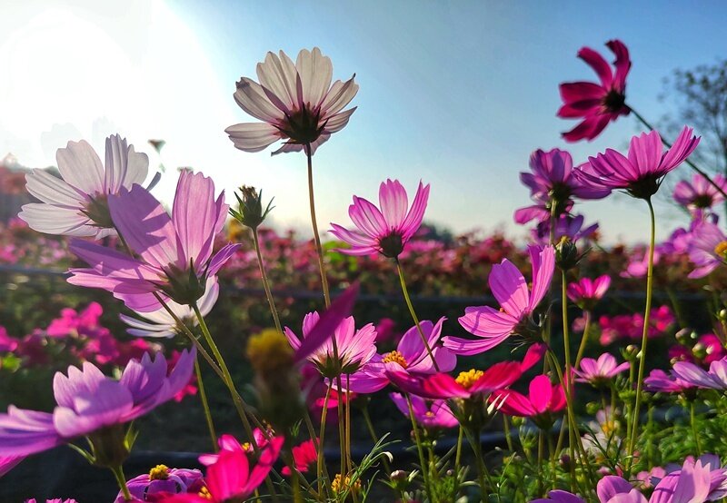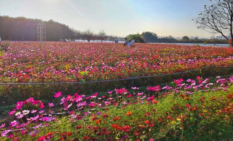 位于惠陽區(qū)良井鎮(zhèn)的廣東省六谷裕興現(xiàn)代農(nóng)業(yè)園、惠州市惠城區(qū)三棟鎮(zhèn)紫溪半島等地,盛開的牽;、格桑花、玫瑰花,醉蝶花等名花異草,延綿成海,美不勝收。