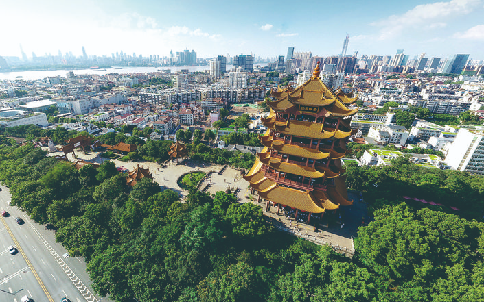 黃鶴樓享有“天下絕景”“天下江山第一樓”之稱,李白等歷代詩人都為黃鶴樓留下了詩詞。登上黃鶴樓遠(yuǎn)眺,可以看到滾滾長江和武漢三鎮(zhèn)風(fēng)光。