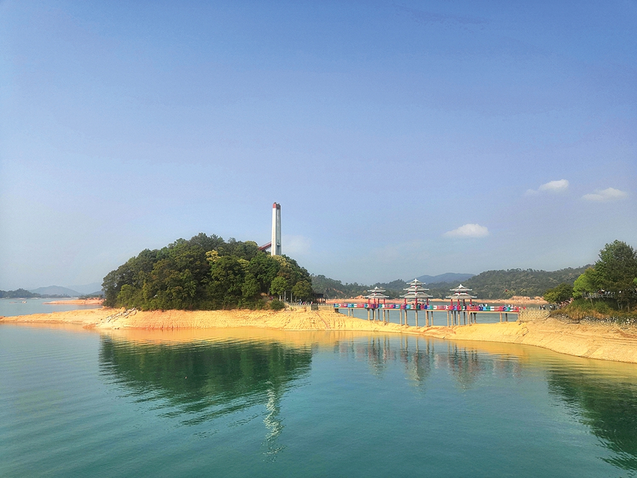 在萬(wàn)綠湖邊環(huán)湖漫步,大家完全被眼前的翠林綠湖美景所吸引,湖中的小島天然秀美,像一顆顆珍珠散落在碧波蕩漾的湖面上,太美了。大家紛紛拿出手機(jī)拍下了“吊索道通關(guān)”“湖中游船,飛艇穿梭”“仙緣橋廊”“天空之鏡”等美景,不由得感慨:身臨其境,真正領(lǐng)略了萬(wàn)綠湖美不勝收的湖光山色,才能理解萬(wàn)綠湖“天上瑤池水,人間萬(wàn)綠湖”的美稱。