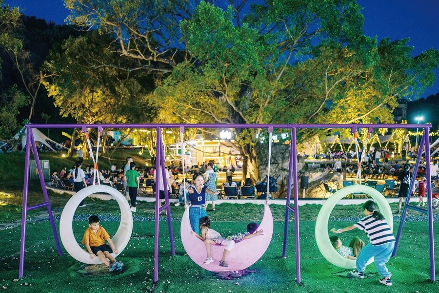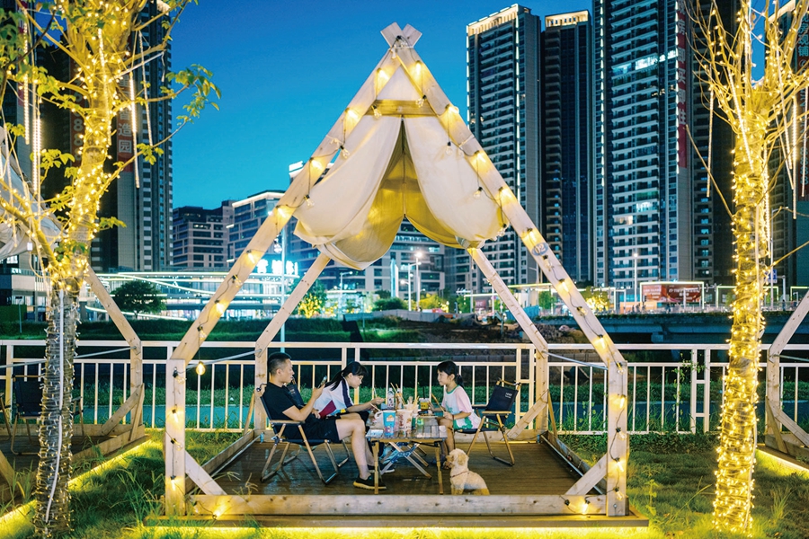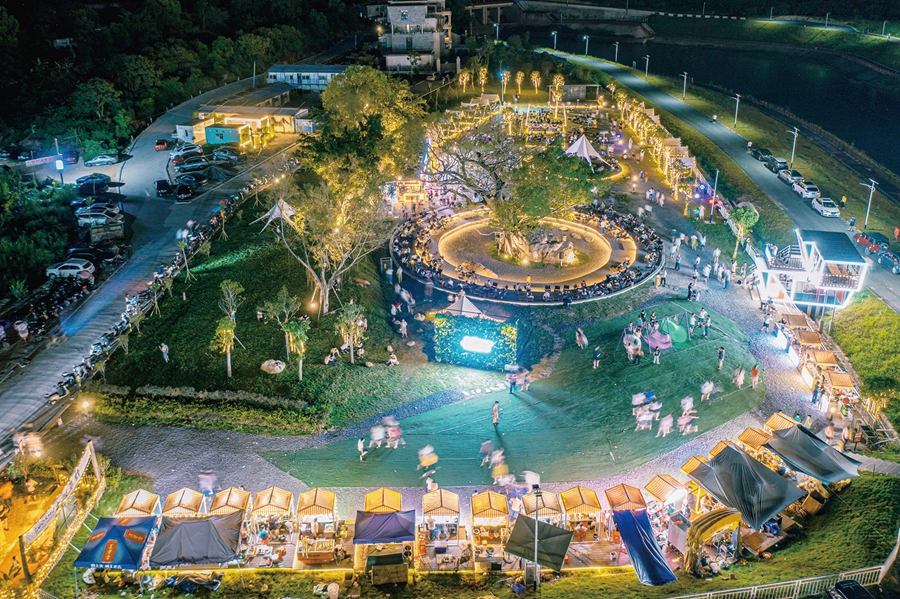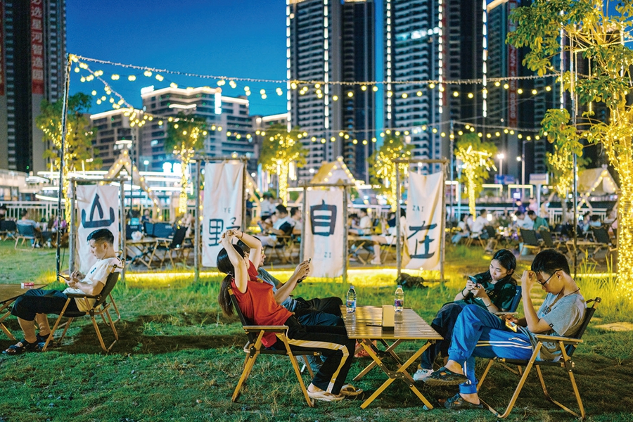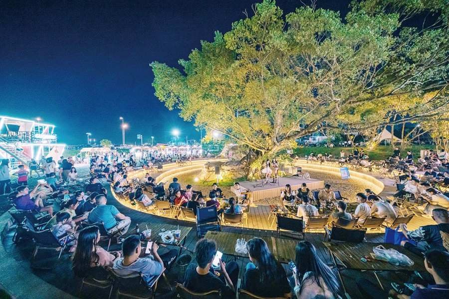 在營地周圍,還有別具一格的創(chuàng)意集市。就著琳瑯滿目的燒烤美食和各色飲品,市民們在此享受音樂、放飛激情、釋放壓力,度過難忘而愉悅的夜晚。