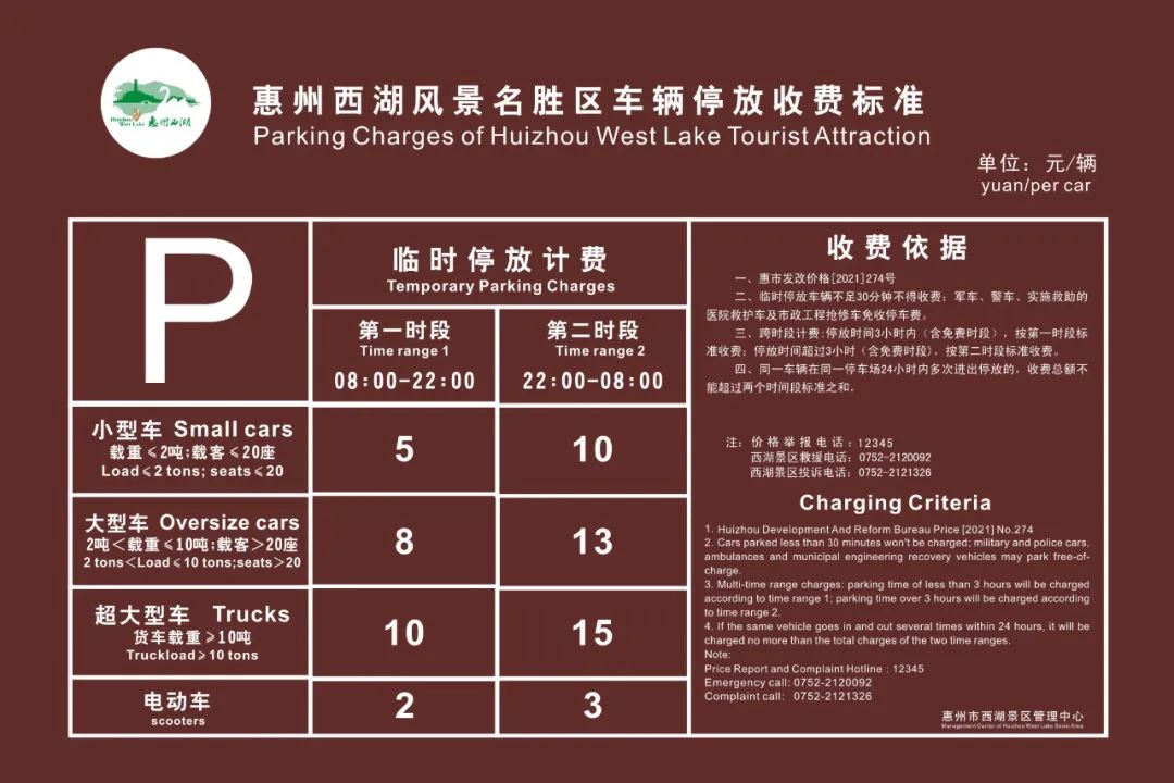 西湖景區(qū)的停車場(chǎng)收費(fèi)十分優(yōu)惠,早上8點(diǎn)到晚上10點(diǎn)這個(gè)時(shí)間段停車只要5元,過夜也才10元,簡(jiǎn)直是車主們的福利。〗裉旖o大家介紹西湖景區(qū)的9個(gè)停車場(chǎng),它們分別是:豐山停車場(chǎng)、紫薇山停車場(chǎng)(分開兩個(gè)停車場(chǎng)入口)、豐渚園停車場(chǎng)、橫槎小隱停車場(chǎng)(分開兩個(gè)停車場(chǎng)入口)、菱湖停車場(chǎng)、北門(慈云路)停車場(chǎng)、豐湖書院停車場(chǎng)(分開兩個(gè)停車場(chǎng)入口)、荔浦風(fēng)清停車場(chǎng)和南苑停車場(chǎng)。