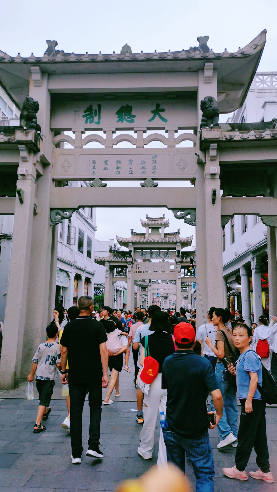 潮州古城位于寒江旁,沿著寒江邊前行,但見保存完好的古城墻至今仍將整個(gè)古城極好地保護(hù)于其中,沿江的幾座城樓是進(jìn)出古城的出入口,其中最巍峨壯觀的,是正對廣濟(jì)橋的廣濟(jì)樓。據(jù)記載,始建于明代的廣濟(jì)樓曾在清咸豐三年因失火而遭到毀壞,后得以重建。重建后的廣濟(jì)樓還原了曾經(jīng)古色古香的模樣。穿過廣濟(jì)門進(jìn)入古城,街上的建筑是典型的騎樓建筑,雖已經(jīng)過修繕,但老街上仍不時(shí)可以看到這些建筑最初的痕跡,或是一塊雕花墻磚,或是一塊老招牌,又或是不同于周邊的樓面,這里留下的,是潮州人下南洋的那段傳奇。再往里走,便可以看到古城里最為出名的石牌坊,“大總制”“少司馬”“四進(jìn)士坊”“節(jié)鎮(zhèn)三省”“太山北斗”“經(jīng)略邊務(wù)”“木天人瑞”……一座座石牌坊向來往游客講述著屬于這座古城的歷史故事和文化內(nèi)涵。再往里走,便越近居民的生活聚居點(diǎn),銀行、郵局、便利店……現(xiàn)代生活的痕跡越發(fā)清晰,潮州府、駙馬府、陳偉南文化館、古大士庵、孔廟等古今建筑散落于居民區(qū)內(nèi)卻不顯突兀?梢哉f,在這座古城里,完整保留下了明清至今的諸多歷史記憶點(diǎn)。