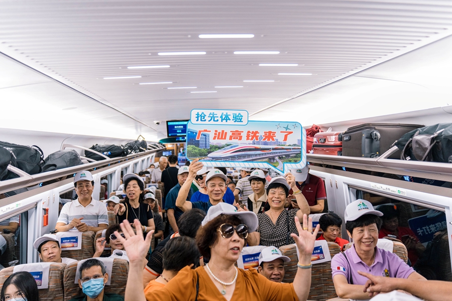 廣汕高鐵來了,搶鮮體驗的游客笑逐顏開。