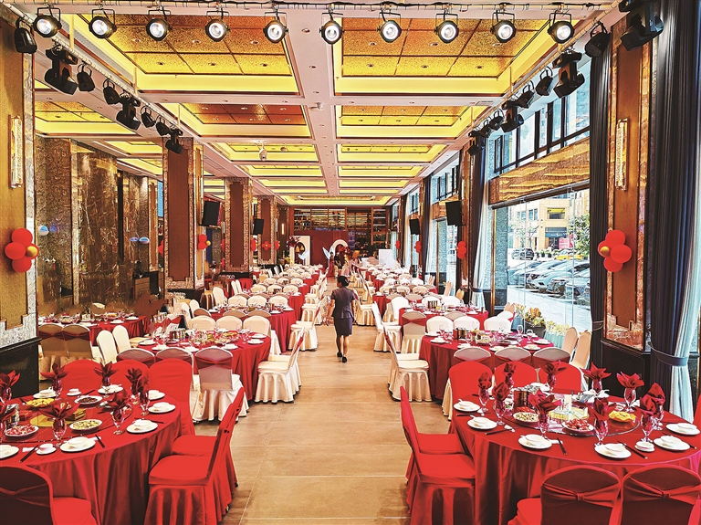 寬敞明亮的酒樓大堂。 惠州日報(bào)記者周楠 攝