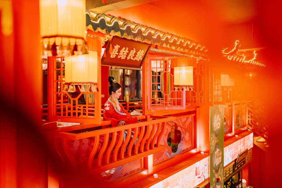 走進(jìn)“燈船”大唐不夜城,仿佛回到了千年前的大唐盛世,從裝修風(fēng)格到細(xì)節(jié)打造處處可見含“唐”量。作為全新打造的餐飲文旅項(xiàng)目,“燈船”融合了盛唐文化與客家文化,沉浸式唐風(fēng)主題餐飲也成為惠州對(duì)外交流的一個(gè)文旅窗口。
