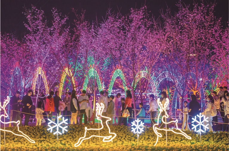 還沒到過嘉年華現(xiàn)場的朋友,不妨約上三兩知己,一起在花林間享冬日溫暖陽光,觀美麗粉色櫻花壓滿花枝,流光溢彩、夢幻迷離。