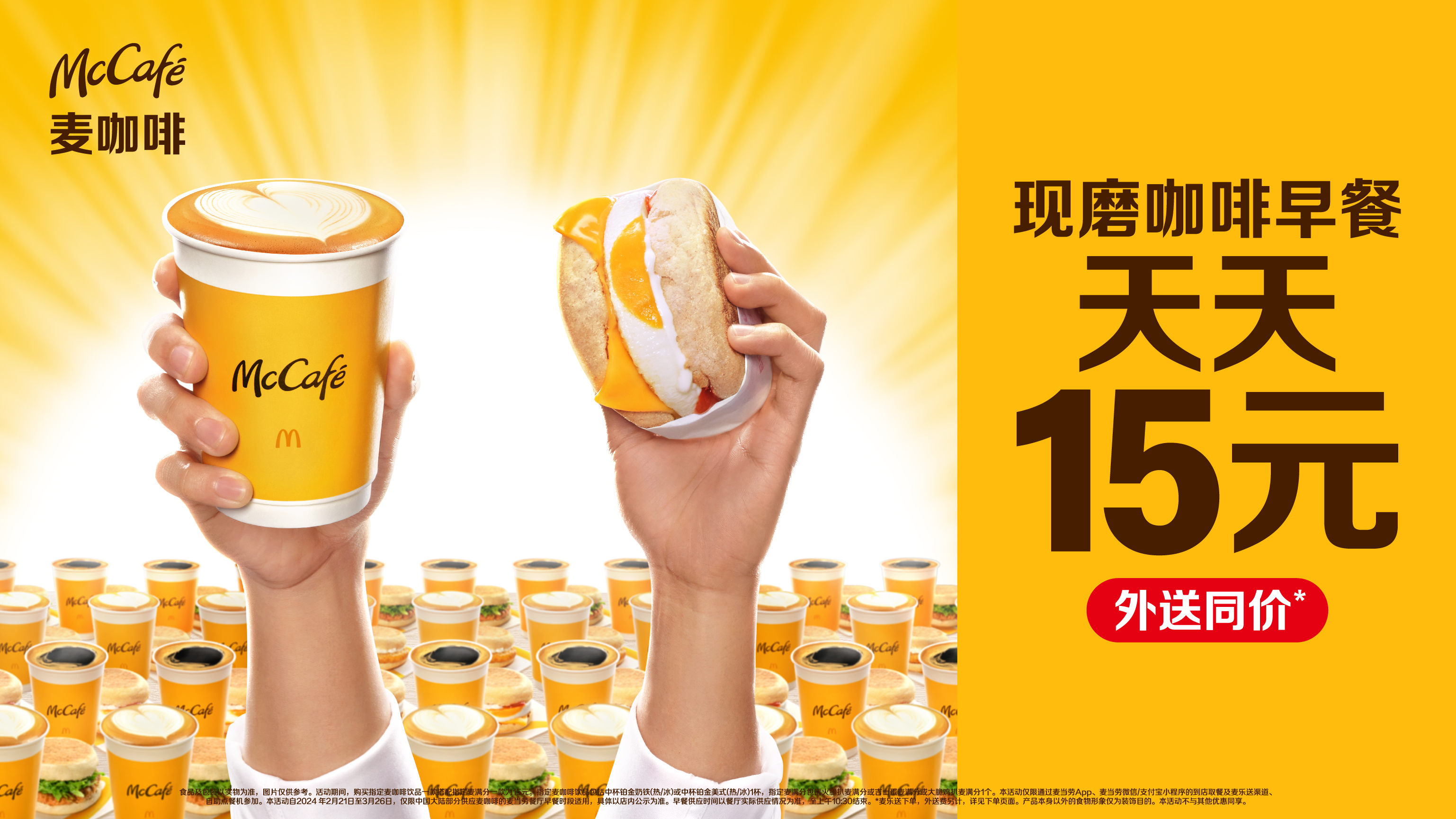 2024年2月21日,麥當(dāng)勞中國宣布推出全新15元現(xiàn)磨咖啡早餐組合,以麥咖啡鉑金豆現(xiàn)磨咖啡搭配早餐當(dāng)家產(chǎn)品麥滿分,引領(lǐng)現(xiàn)磨咖啡早餐進(jìn)入高品質(zhì)與高性價(jià)比兼得的“15元時(shí)代”。每天早餐時(shí)段,顧客可以在堂食和外送服務(wù),同享這一天天15元的高品質(zhì)早餐組合。