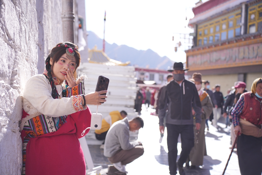 日喀則街頭處處是濃厚的藏族風(fēng)情。