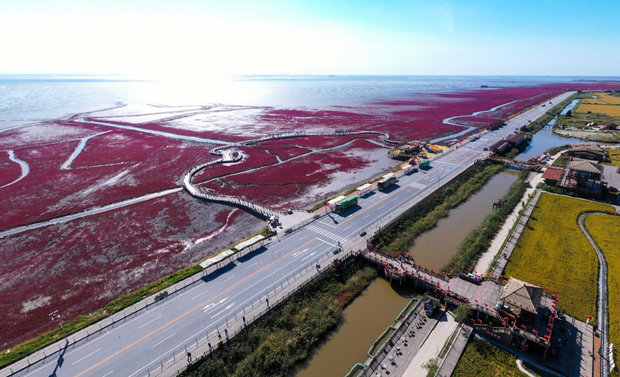 盤錦紅海灘是獨(dú)特的“世界紅色海岸線”。